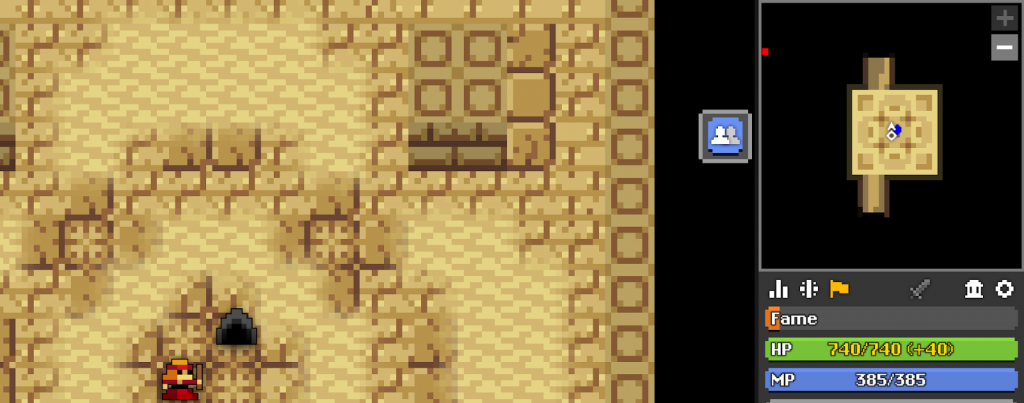 Once inside the dungeon, if it includes credits, a button with the same icon will appear next to the minimap. Hovering over this button displays a panel with the dungeon’s credits.