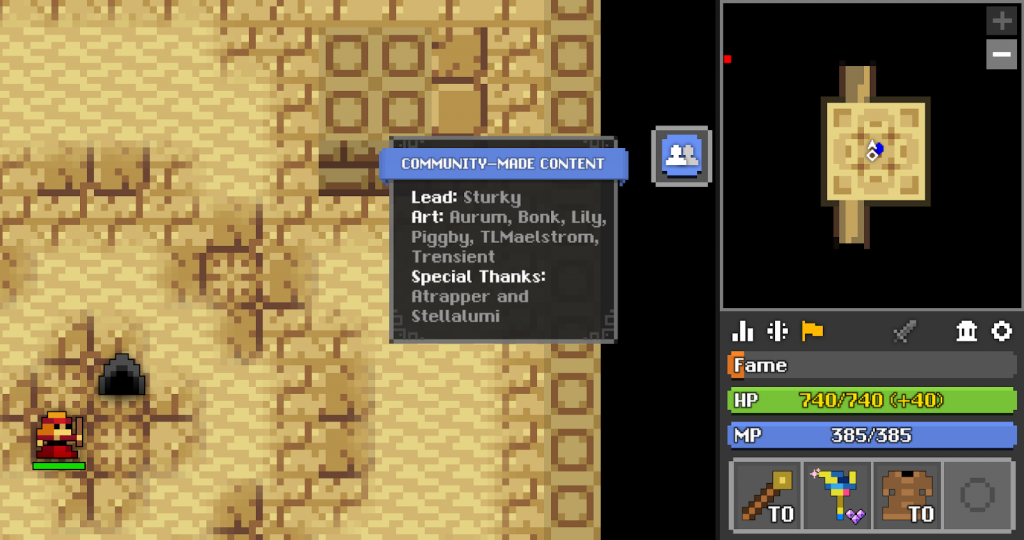 Now, in addition to being shown on the credit screen in the pause menu, a new icon now appears in the top left corner to indicate that a dungeon is community-made.
