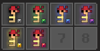 For keys, the icon appears in the bottom-right corner of the inventory or chest slot, and it features a glow in the corresponding grade color around the sprite.